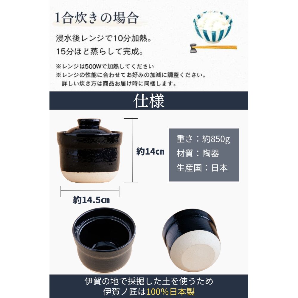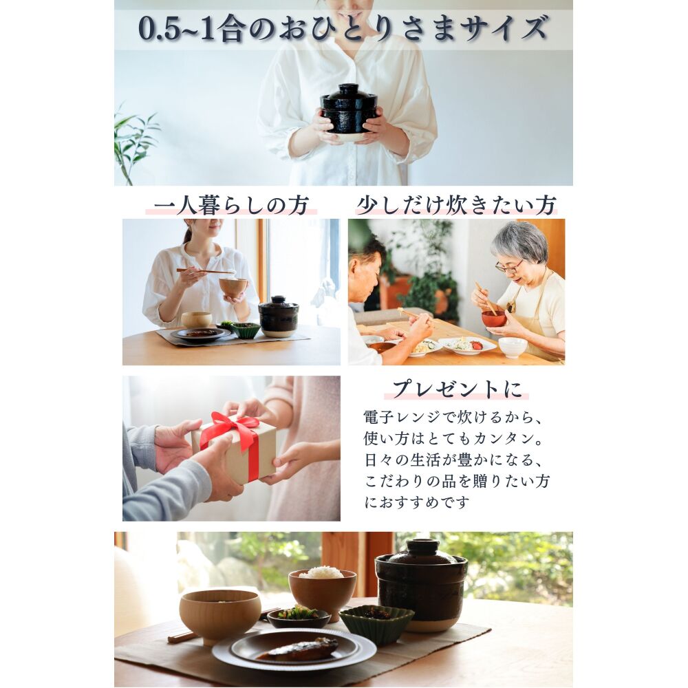 【0.5~1号のお一人様サイズ】炊飯器で少量のご飯を炊くと、炊きムラができてしまいあまり美味しく仕上がらないこともありますが、伊賀ノ匠なら0.5号からでも美味しいごはんが炊けます。
